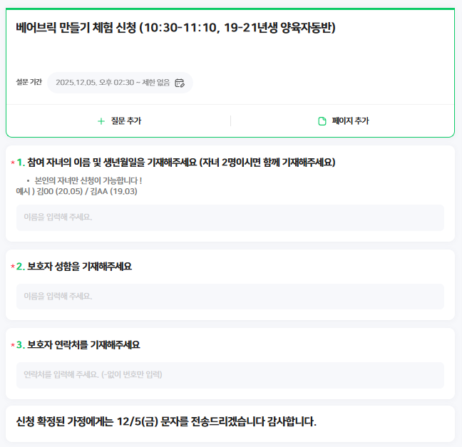 º£¾îºê¸¯ ¸¸µé±â üÇè (10:30-11:10, 19-21³â»ý ¾çÀ°ÀÚ µ¿¹Ý) ½Åû : 12/5(±Ý) 14½Ã 30ºÐ