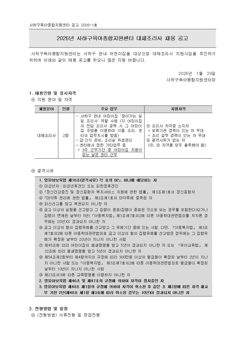 2026³â »çÇϱ¸À°¾ÆÁ¾ÇÕÁö¿ø¼¾ÅÍ ´ëüÁ¶¸®»ç ä¿ë °ø°í