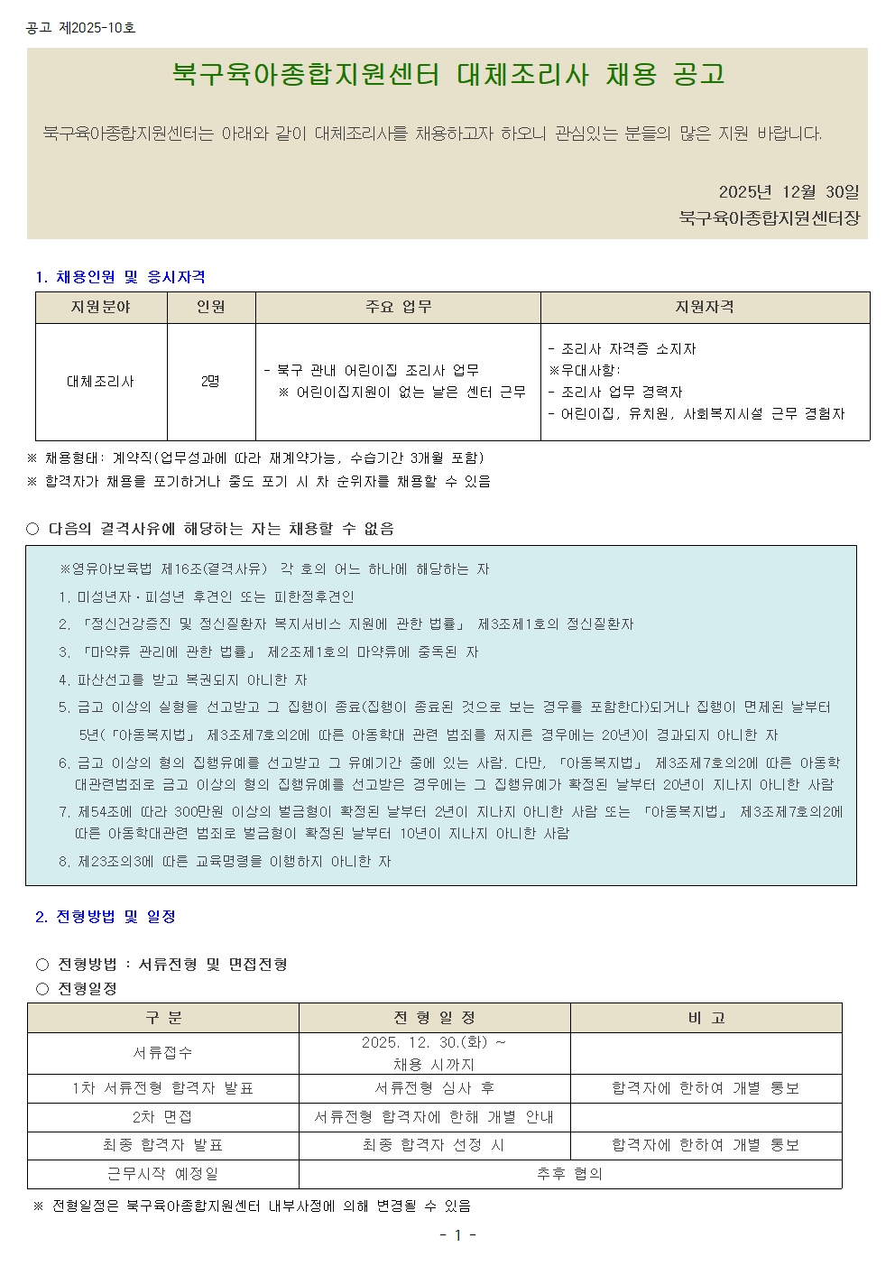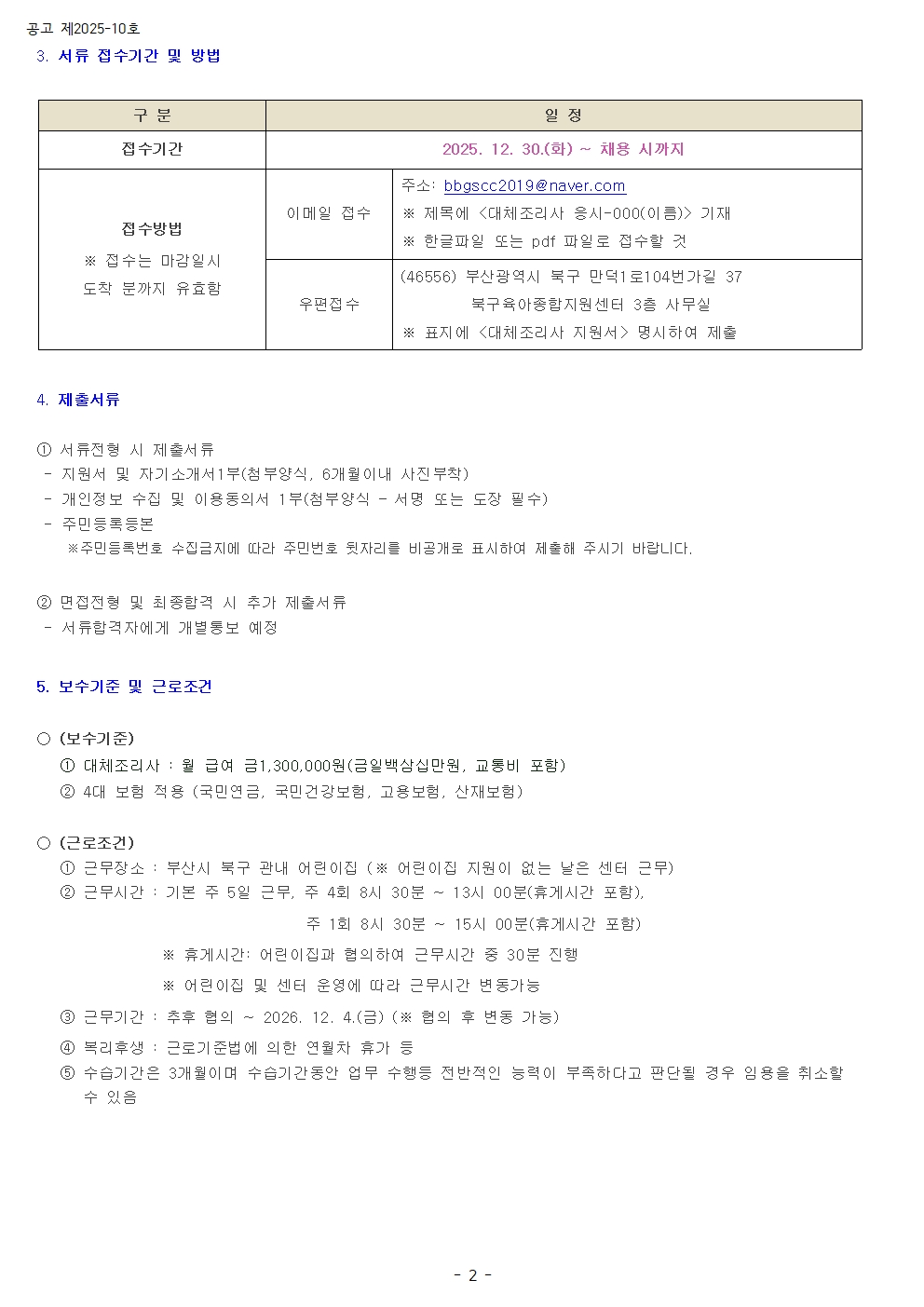 ºÎ»êºÏ±¸À°¾ÆÁ¾ÇÕÁö¿ø¼¾ÅÍ ´ëüÁ¶¸®»ç ä¿ë °ø°í