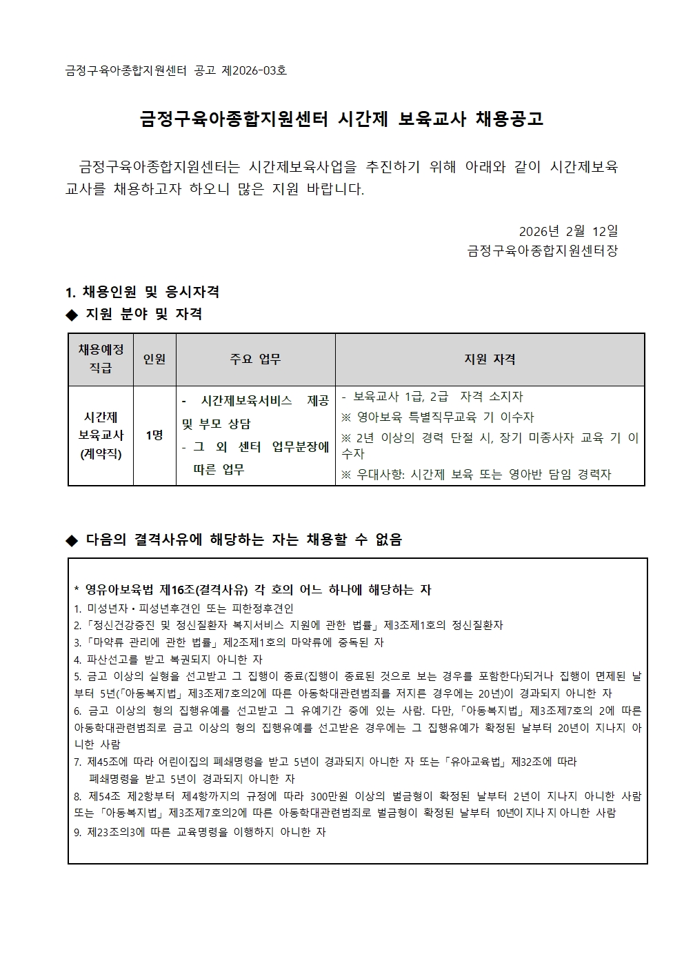 ±ÝÁ¤±¸À°¾ÆÁ¾ÇÕÁö¿ø¼¾ÅÍ ½Ã°£Á¦ º¸À°±³»ç ä¿ë°ø°í