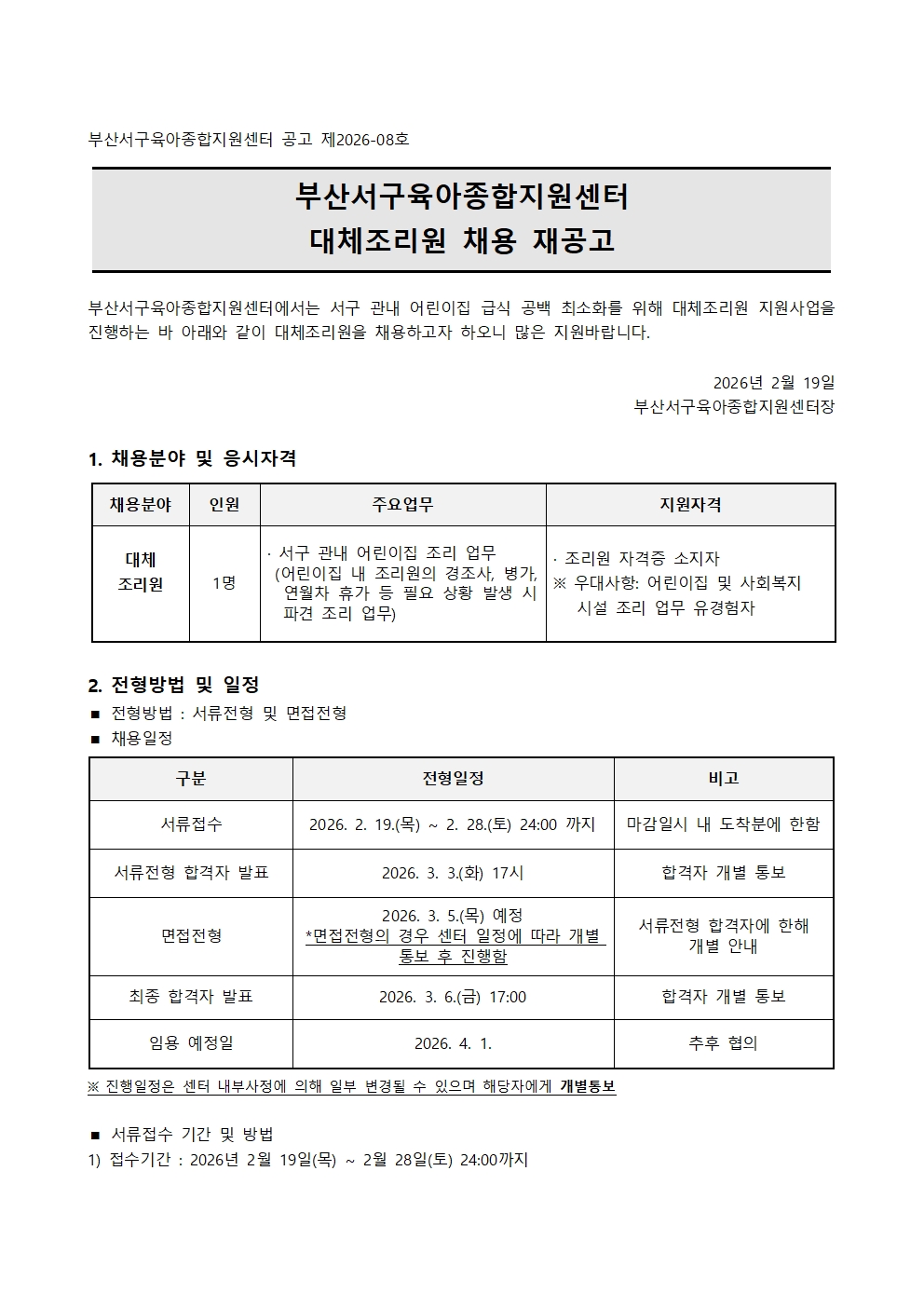 ºÎ»ê¼±¸À°¾ÆÁ¾ÇÕÁö¿ø¼¾ÅÍ ´ëüÁ¶¸®¿ø ä¿ë Àç°ø°í