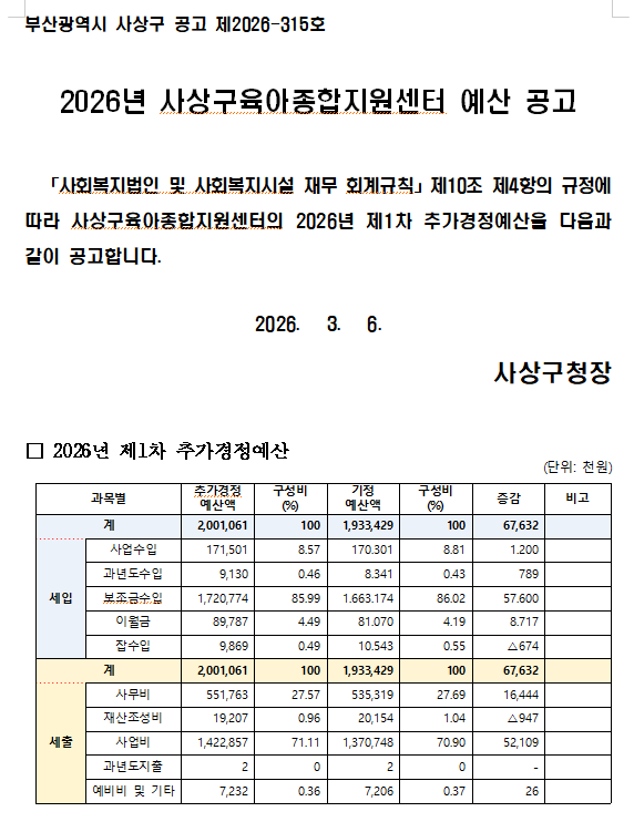 2026³â Á¦1Â÷ Ãß°¡°æÁ¤¿¹»ê °ø°í