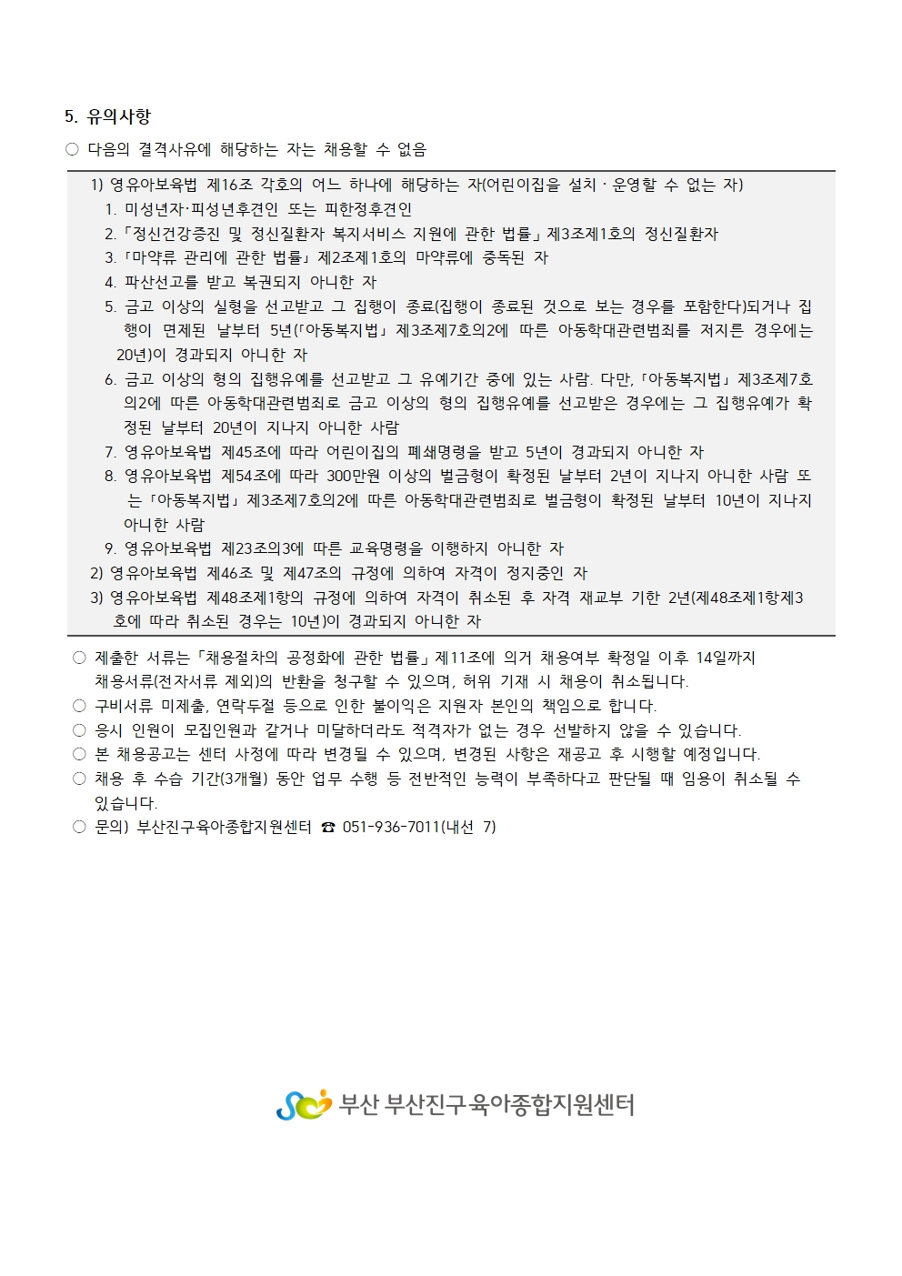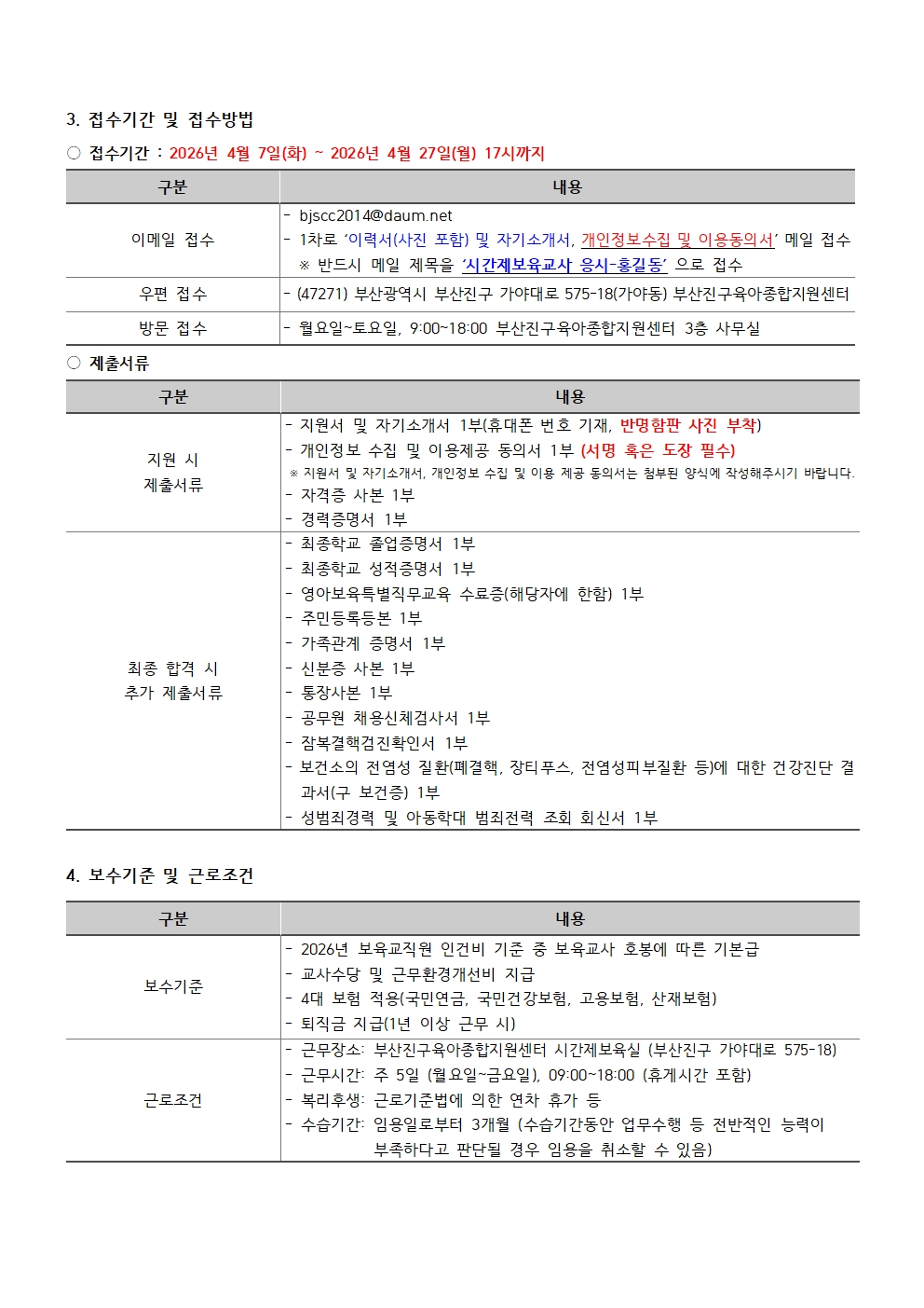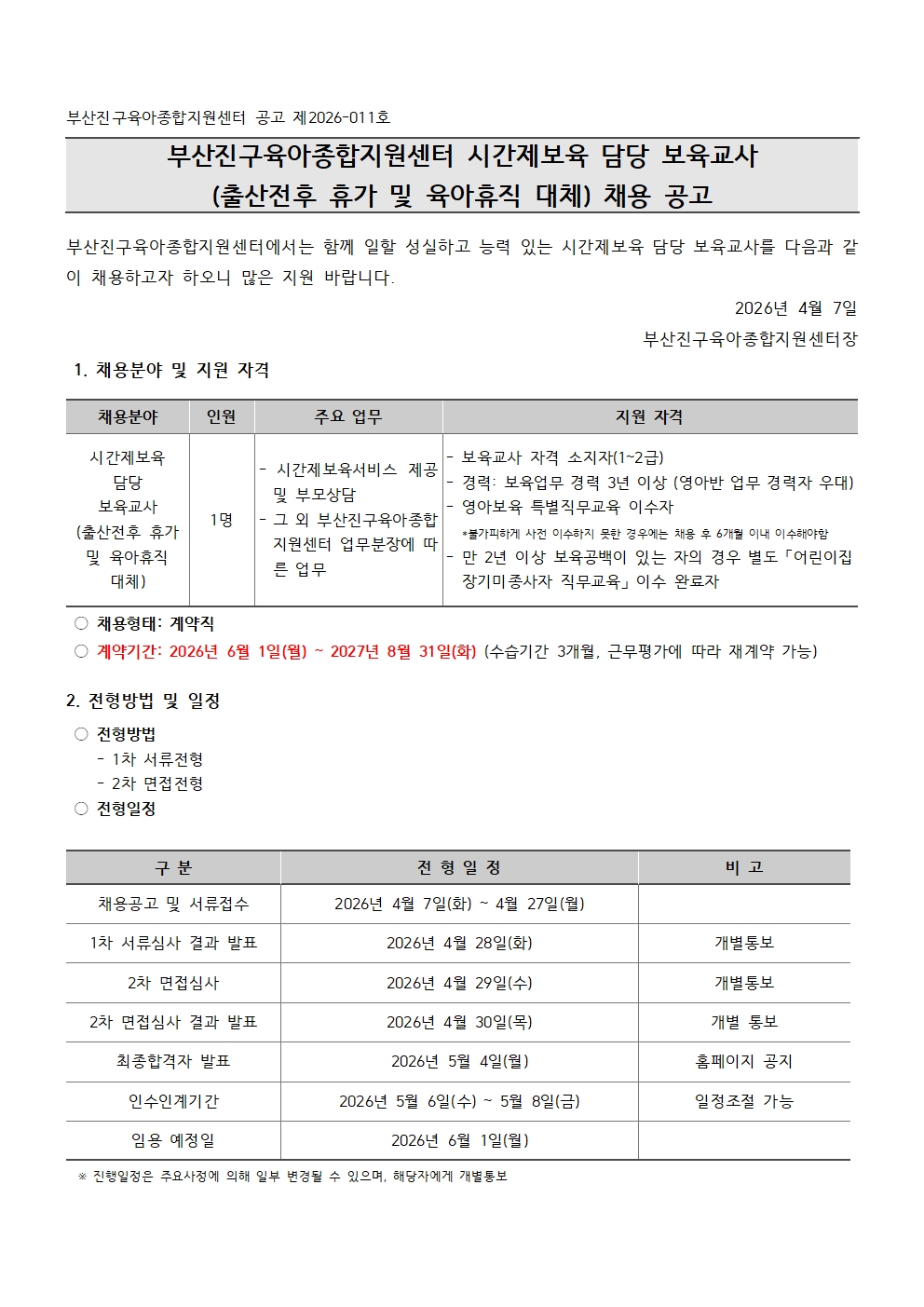 ºÎ»êÁø±¸À°¾ÆÁ¾ÇÕÁö¿ø¼¾ÅÍ ½Ã°£Á¦º¸À° ´ã´ç º¸À°±³»ç(Ãâ»êÀüÈÄ ÈÞ°¡ ¹× À°¾ÆÈÞÁ÷ ´ëü) ä¿ë °ø°í