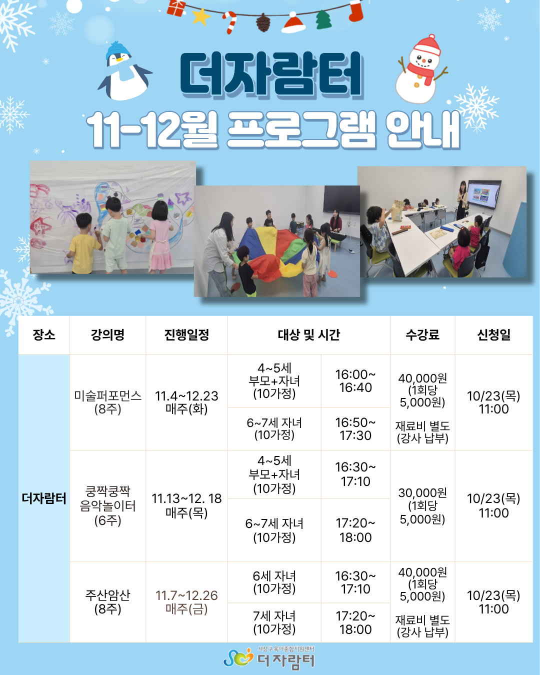 °øÁö [´õÀÚ¶÷ÅÍ]11~12¿ù ÇÁ·Î±×·¥ ¾È³» | |||||