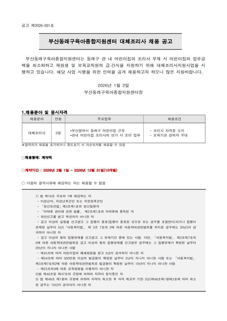 ºÎ»êµ¿·¡±¸À°¾ÆÁ¾ÇÕÁö¿ø¼¾ÅÍ ´ëüÁ¶¸®»ç ä¿ë °ø°í