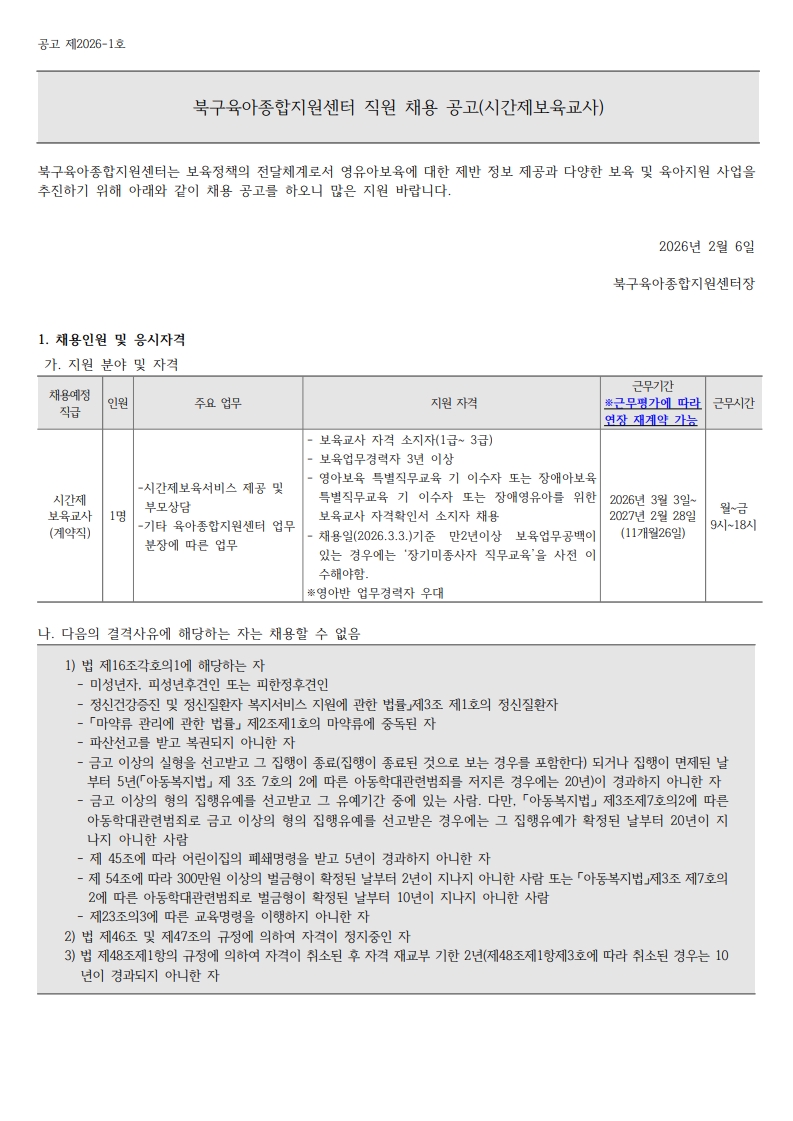 ºÏ±¸À°¾ÆÁ¾ÇÕÁö¿ø¼¾ÅÍ Á÷¿ø ä¿ë °ø°í(½Ã°£Á¦º¸À°±³»ç)