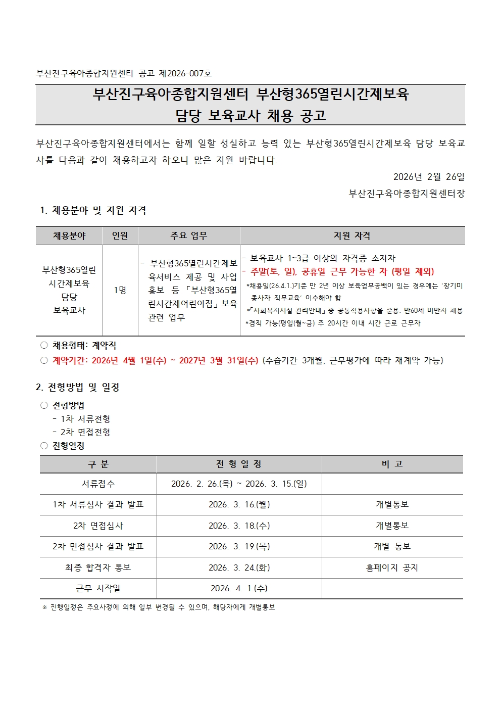 ºÎ»êÁø±¸À°¾ÆÁ¾ÇÕÁö¿ø¼¾ÅÍ ºÎ»êÇü365¿¸°½Ã°£Á¦º¸À° ´ã´ç º¸À°±³»ç ä¿ë °ø°í