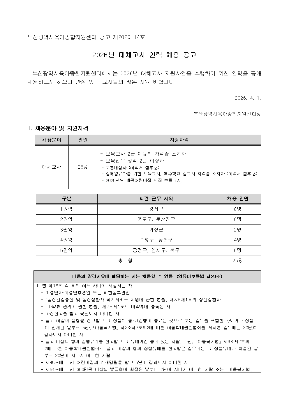 [ºÎ»ê±¤¿ª½ÃÀ°¾ÆÁ¾ÇÕÁö¿ø¼¾ÅÍ] 2026³â ´ëü±³»ç Àη ä¿ë °ø°í