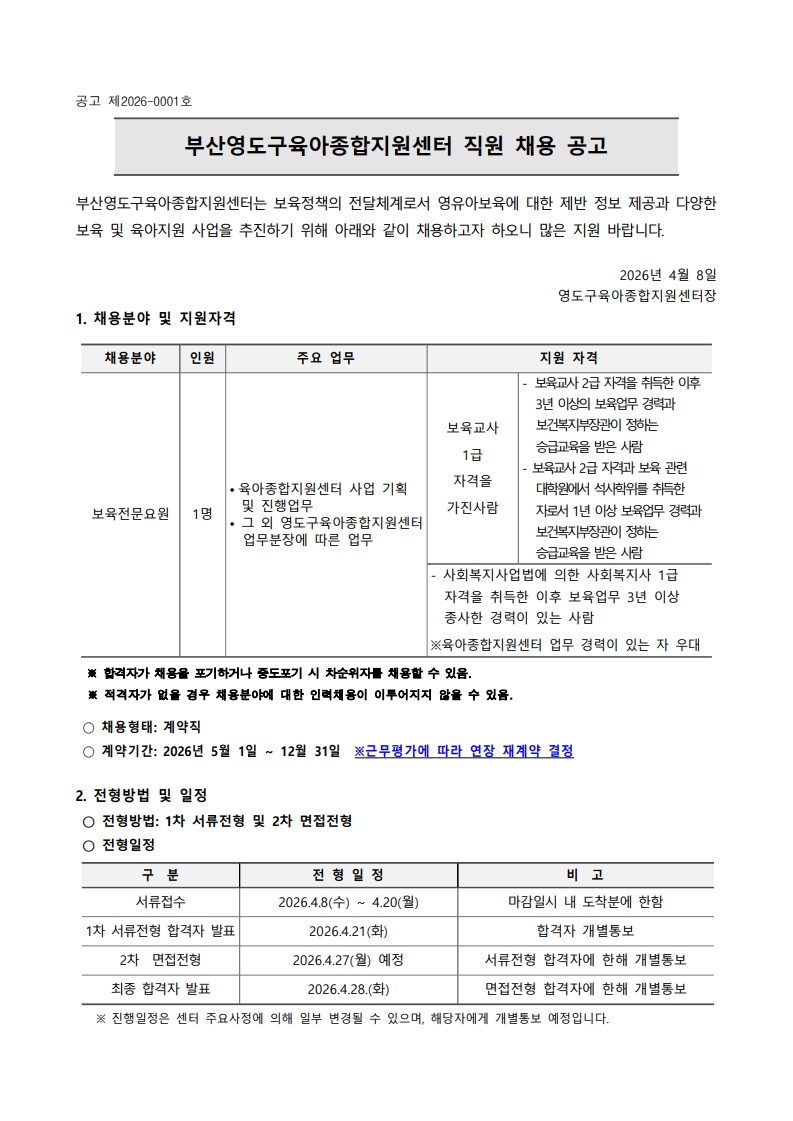 ºÎ»ê¿µµµ±¸À°¾ÆÁ¾ÇÕÁö¿ø¼¾ÅÍ Á÷¿ø ä¿ë °ø°í