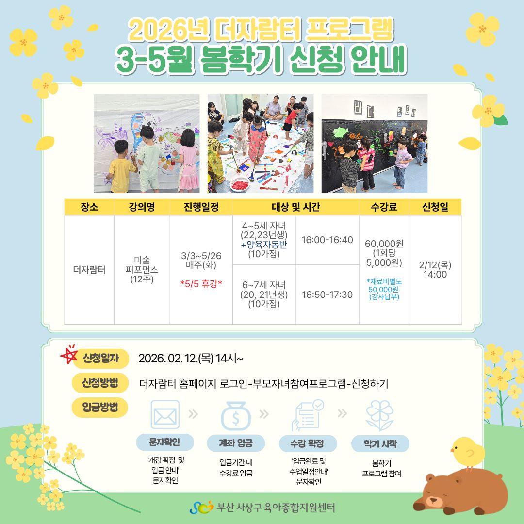 2026³â 3-5¿ù º½Çб⠹̼ú ÆÛÆ÷¸Õ½º (4-5¼¼ ºÎ¸ð+ÀÚ³à)