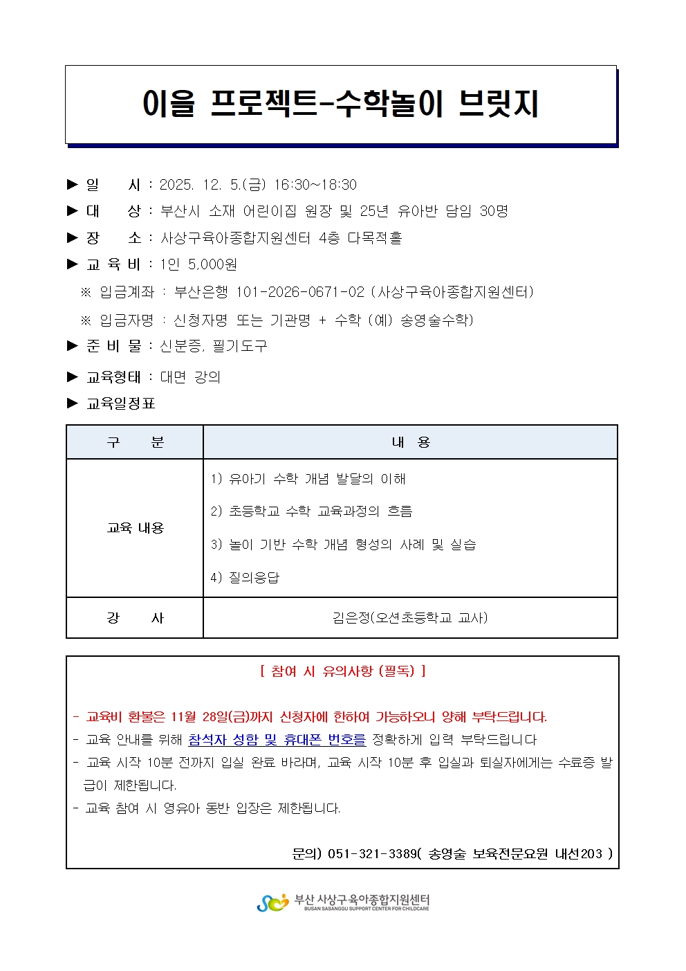 | Á¢¼ö´ë»ó | ±â°ü, º¸À°±³Á÷¿ø, ºÎ¸ð, ÀÏ¹Ý | Á¤¿ø | 30¸í (½Åû: 10) |
