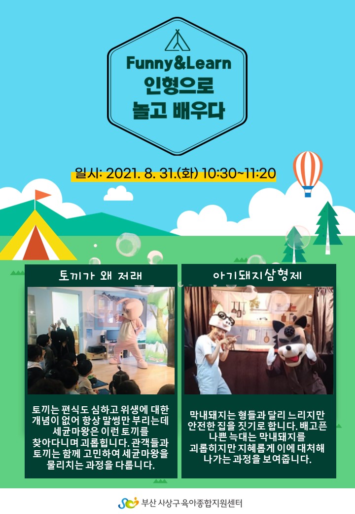 'Funny&Learn ÀÎÇüÀ¸·Î ³î°í ¹è¿ì´Ù' °ø¿¬ÀÇ °æ¿ì ¾Æ·¡ µÎ °¡Áö °ø¿¬ÀÌ ¸ðµÎ ÁøÇàµË´Ï´Ù.