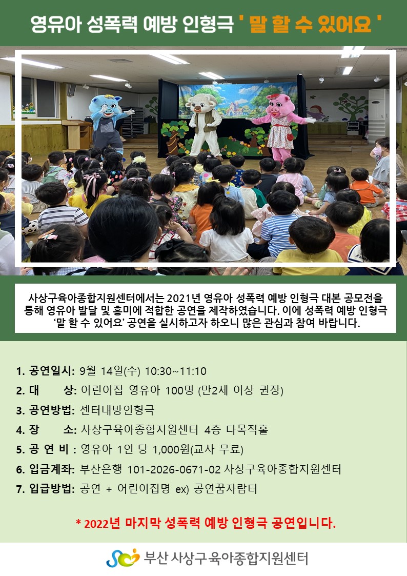 °ø¿¬ [¼¾ÅͰø¿¬] 9¿ù ¼ºÆø·Â ¿¹¹æ ÀÎÇü±Ø ¸» ÇÒ ¼ö ÀÖ¾î¿ä