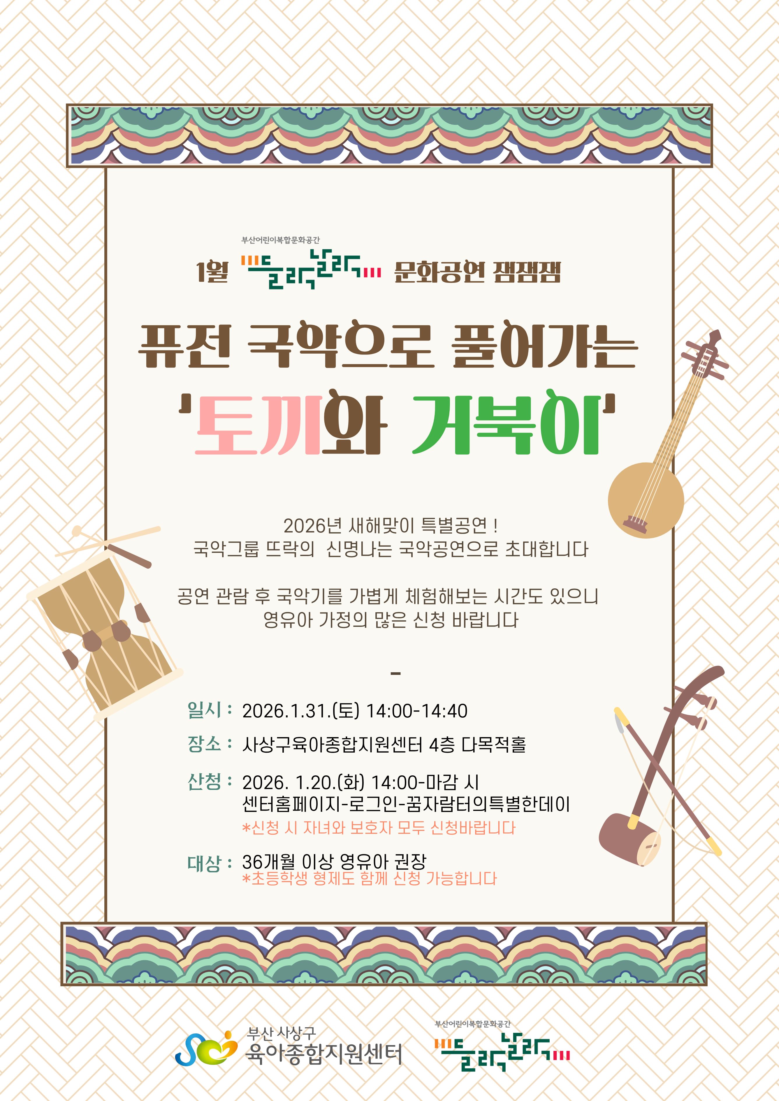 | ±âŸ»çÇ× | [µé¶ô³¯¶ô ¹®È°ø¿¬ ÀëÀëÀë] 1¿ù Åä³¢¿Í °ÅºÏÀÌ ±¹¾Ç°ø¿¬ ½Åû ½Ã ÀÚ³à¿Í º¸È£ÀÚ ¸ðµç ÀοøÀ» ±âÀçÇØÁÖ½Ã±æ ¹Ù¶ø´Ï´Ù |